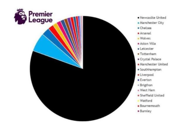 Through the people who killed Jamal Khashoggi PIF, Newcastle immediately became the richest club in the world overnight. The pie chart below is a representation of the wealth of all the Premier League’s owners.